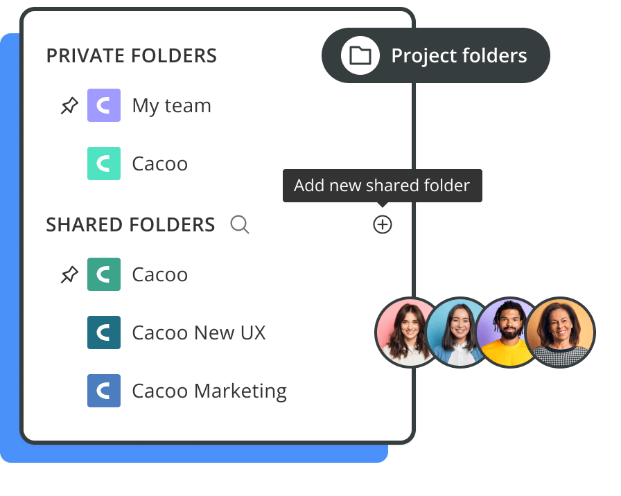 Create unlimited shared folders, each with its own members and permissions.