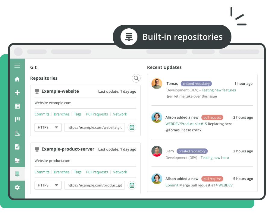 With built-in Git and SVN repositories for every project, Backlog empowers developers to track changes, manage revisions, and collaborate effectively. Specific version control features include the ability to quickly compare branches before merging, access to a full list of commits to monitor changes, and the ability to see Wiki changes to compare or restore previous versions. The platform can also seamlessly integrate with Nulab’s diagramming tool Cacoo giving it a compelling edge against competitors.