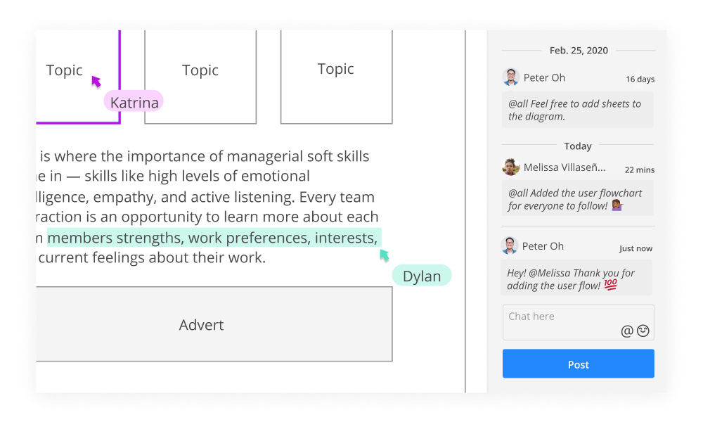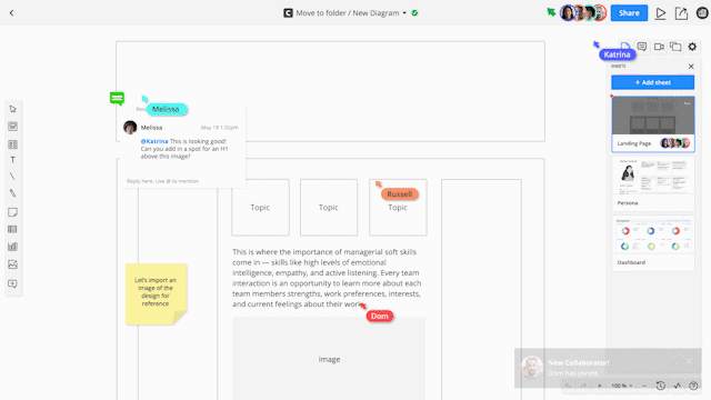 Cacoo makes it easy to share your designs and collect feedback synchronously and asynchronously. It’s the perfect tool for remote and hybrid teams, ensuring everyone can stay in touch, no matter where (or when) they work.