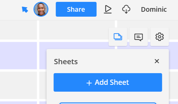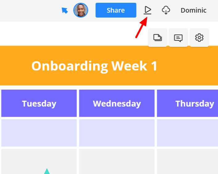 First, use presentation mode to present your completed designs, either in person or via screen sharing through video chat. Just click the play button to activate presentation mode.
