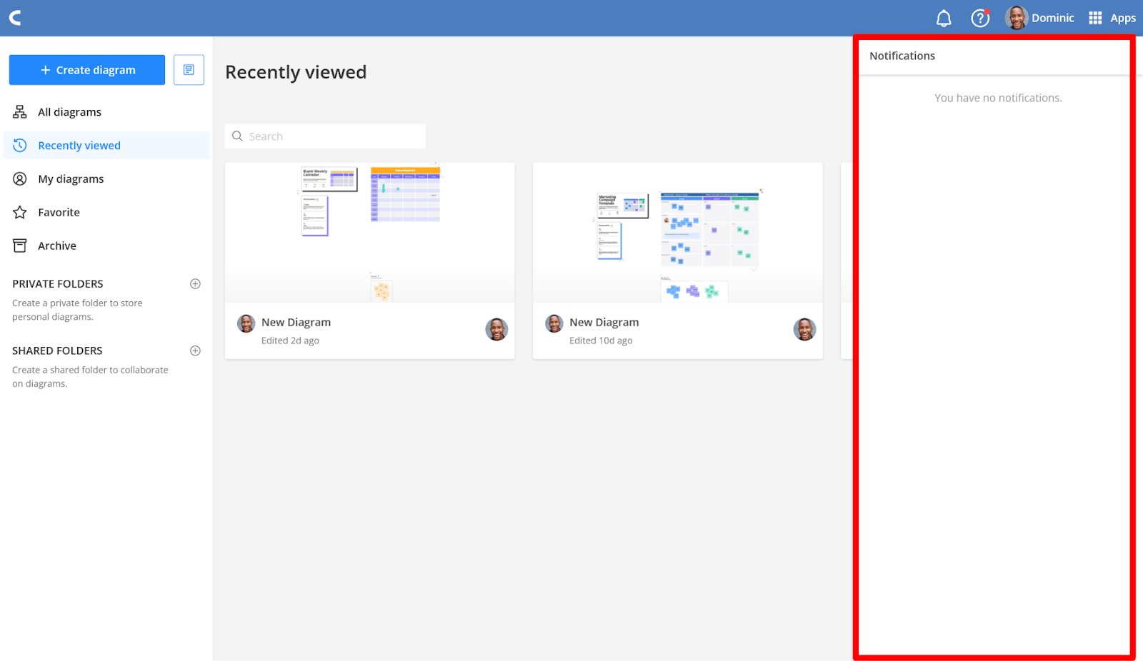 Access the designs, folders, and diagrams others have shared via your dashboard.