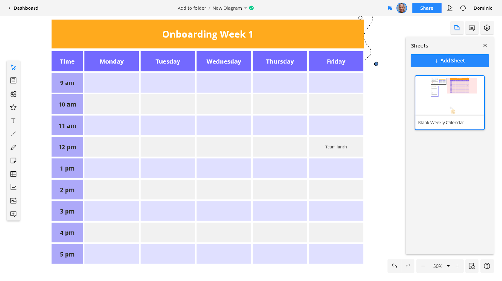 If you’d like, you can sign up for a free Cacoo account and follow along with the steps below, plugging in information specific to your business and your onboarding process. Activate your free account now to get started. Alternatively, keep reading to understand if Cacoo is a good fit: you can set up your account whenever you’re ready!