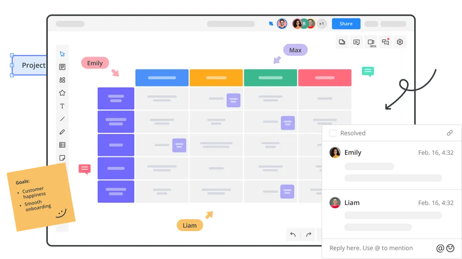 Once you’re satisfied with your onboarding process flow, it’s time to move on to the next step: gathering feedback using Cacoo’s collaboration and sharing features.