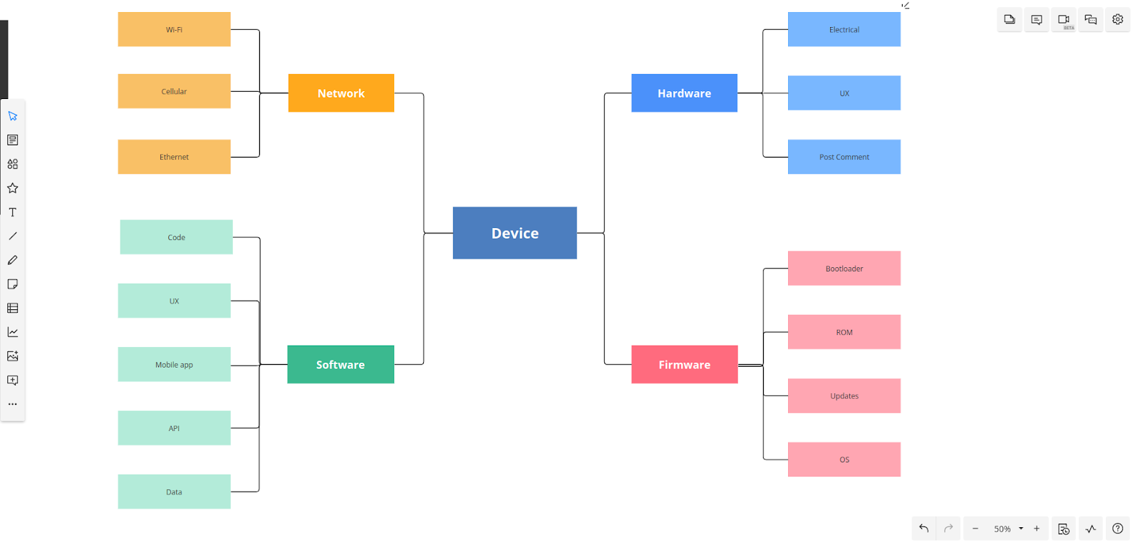 Once you’ve picked a template, start by adding topics and subtopics. For our example, we’ve begun brainstorming the different components that will need to go into a new device we’re developing.