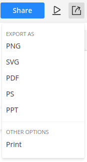 Finally, Cacoo makes it easy to export your mind map into whatever format you need so that you can take the next step in your project. Simply click the export button at the top, and you’ve got options to export as a PNG, SVG, PDF, and more.