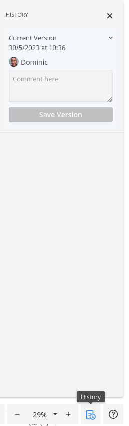 Just press the ‘History’ button in the bottom right corner, and you can save a current version.