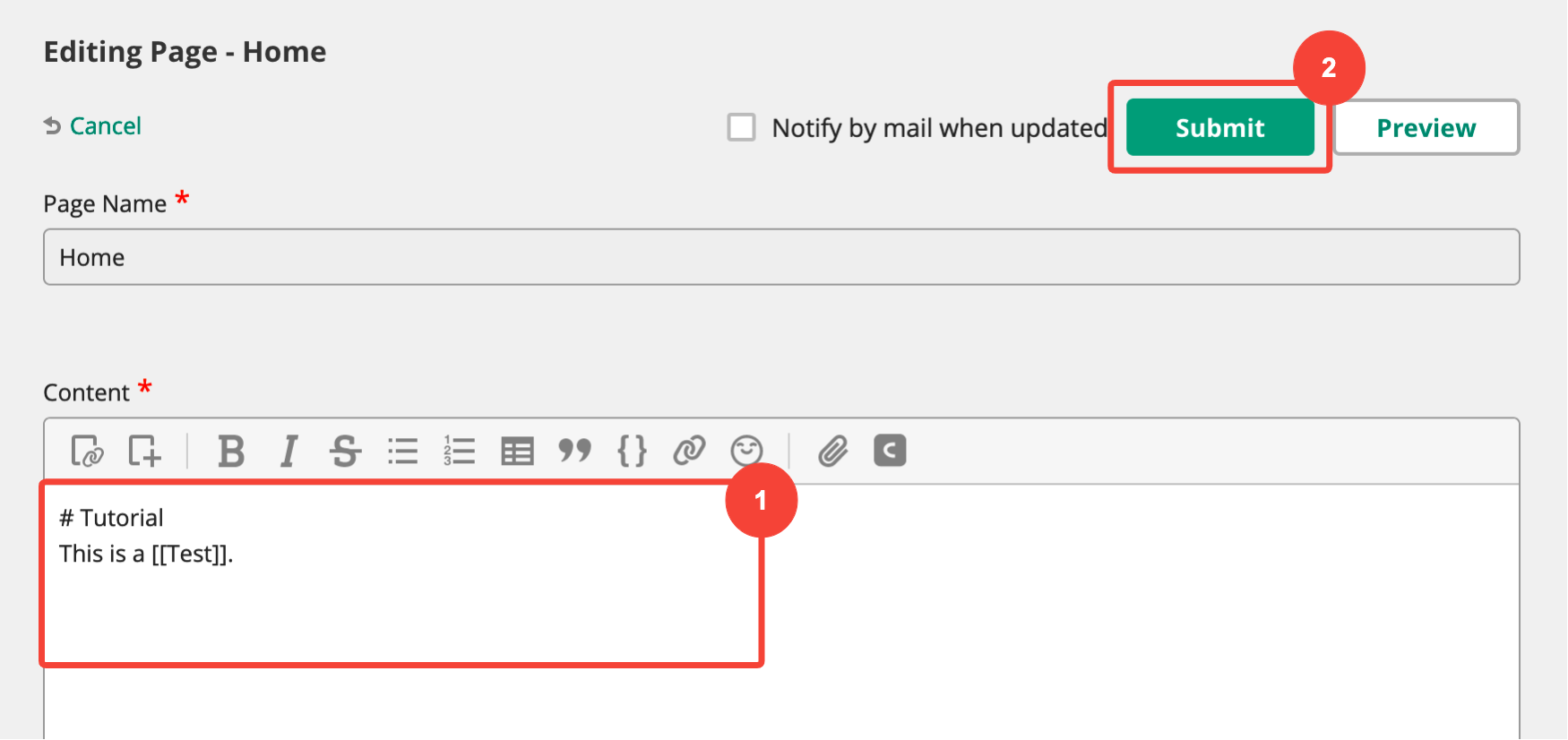 To contribute to a wiki, you’ll start by creating a page. All pages have a title and text. Unlike pages of a normal website, you won’t need to know any code to contribute content here. You can write and format text on a wiki page like you would an email.