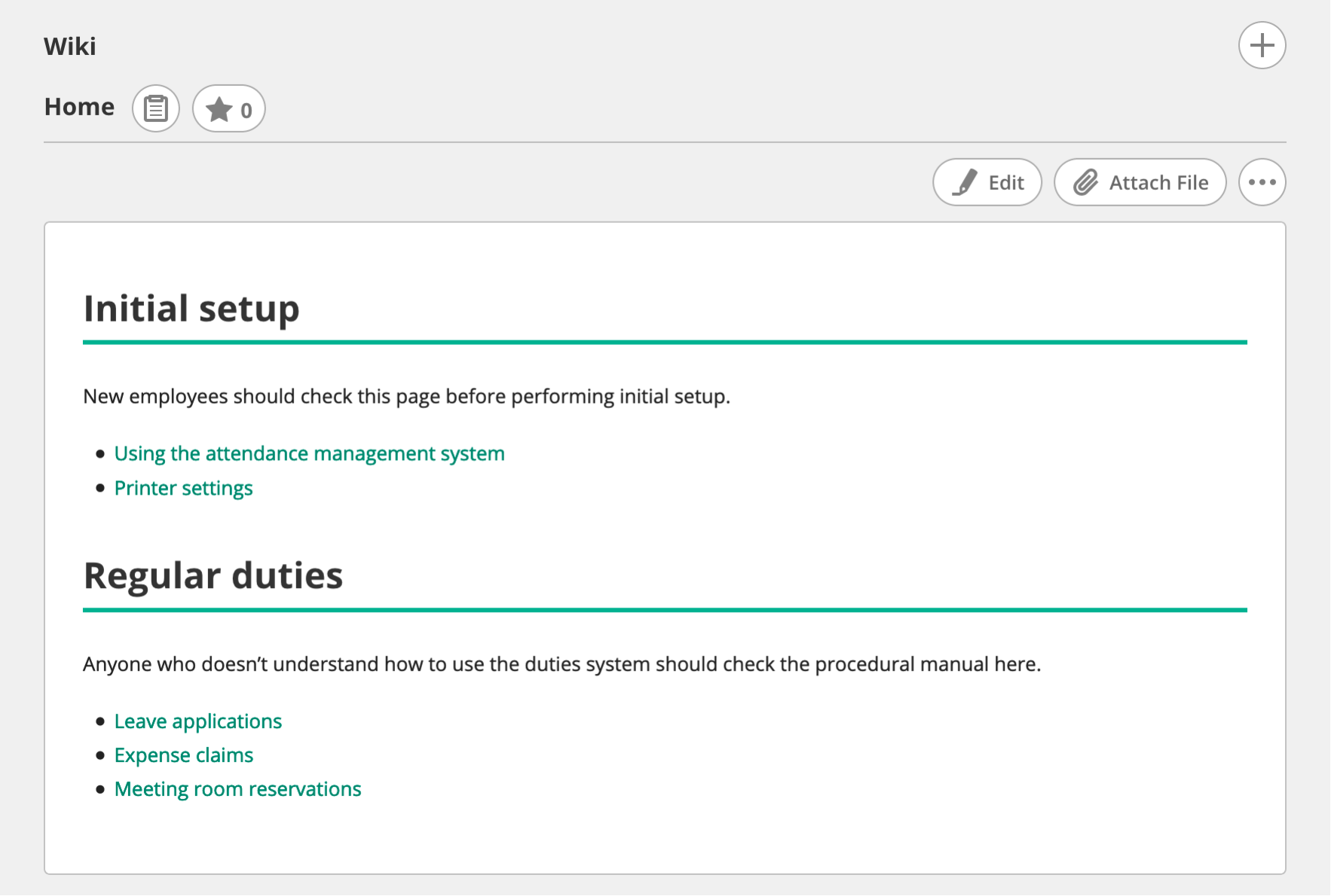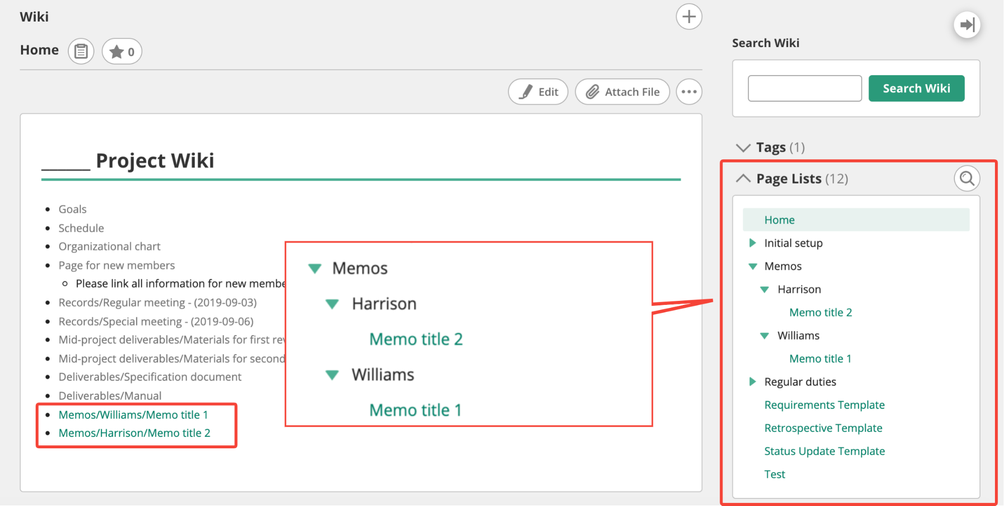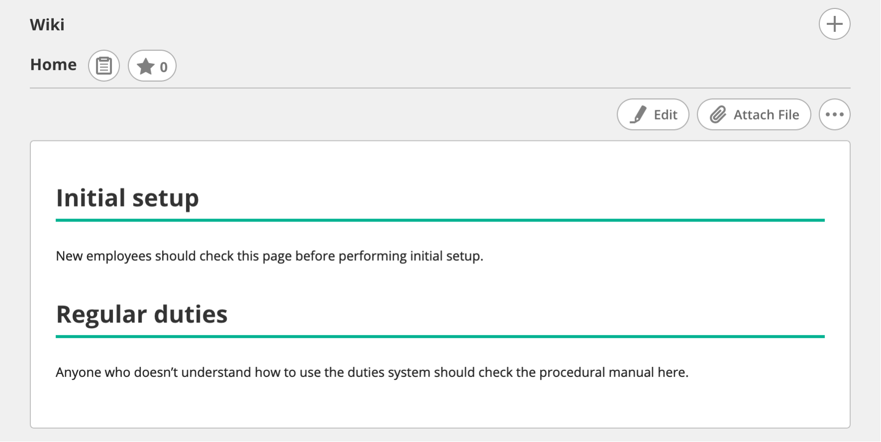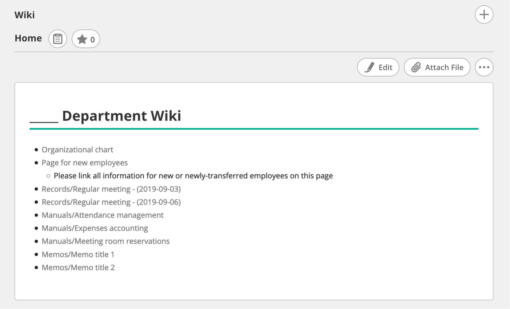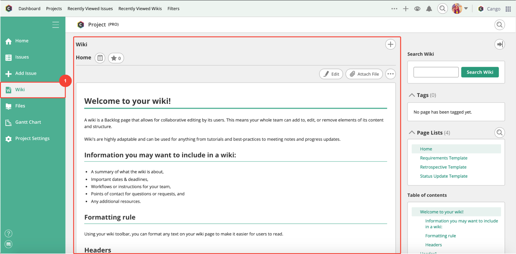 If you have a lot of projects, we recommend standardizing your templates company-wide or department-wide. Doing so will make it easier for employees to get used to a new Wiki when transferring between projects.