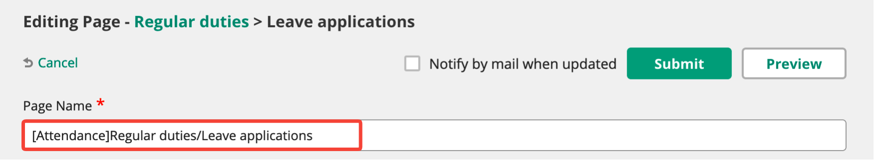 You can change a page’s name and its parent page later on. For example, since “Memos/Notes on troubleshooting” will also be useful to new team members, it can be moved to “Page for new members/Notes on troubleshooting”