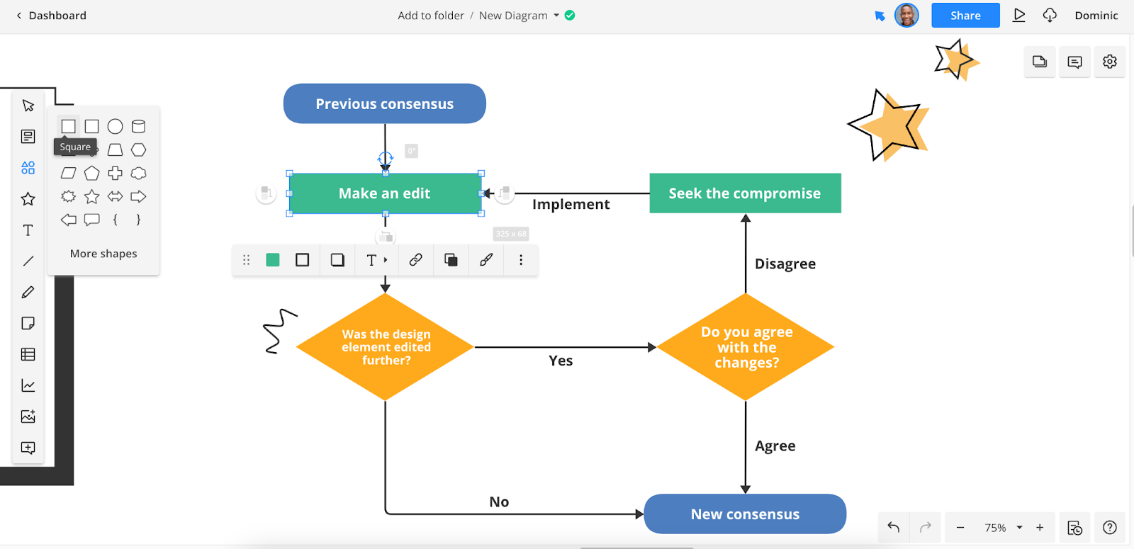 Cacoo makes editing your flowchart a breeze, helping you move past design basics and spend more time focusing on the real task at hand: understanding and solving your design problem.