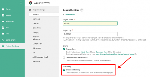 To enable this feature, Project Administrators can select Enable subtasking under Project Settings.