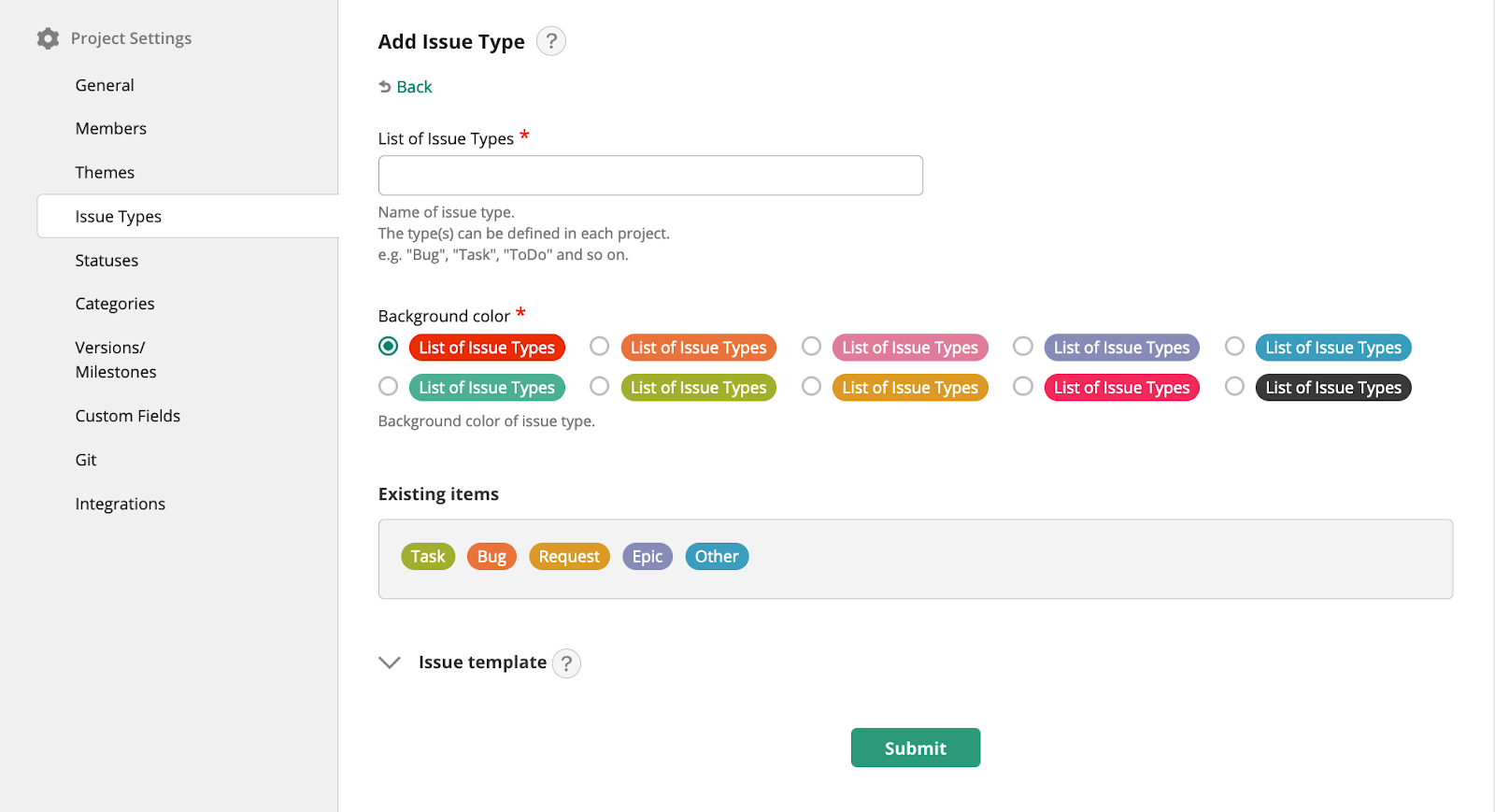 First, create custom issue templates to streamline task creation and organization. You can access this feature on the Issue Types menu under Project Settings.