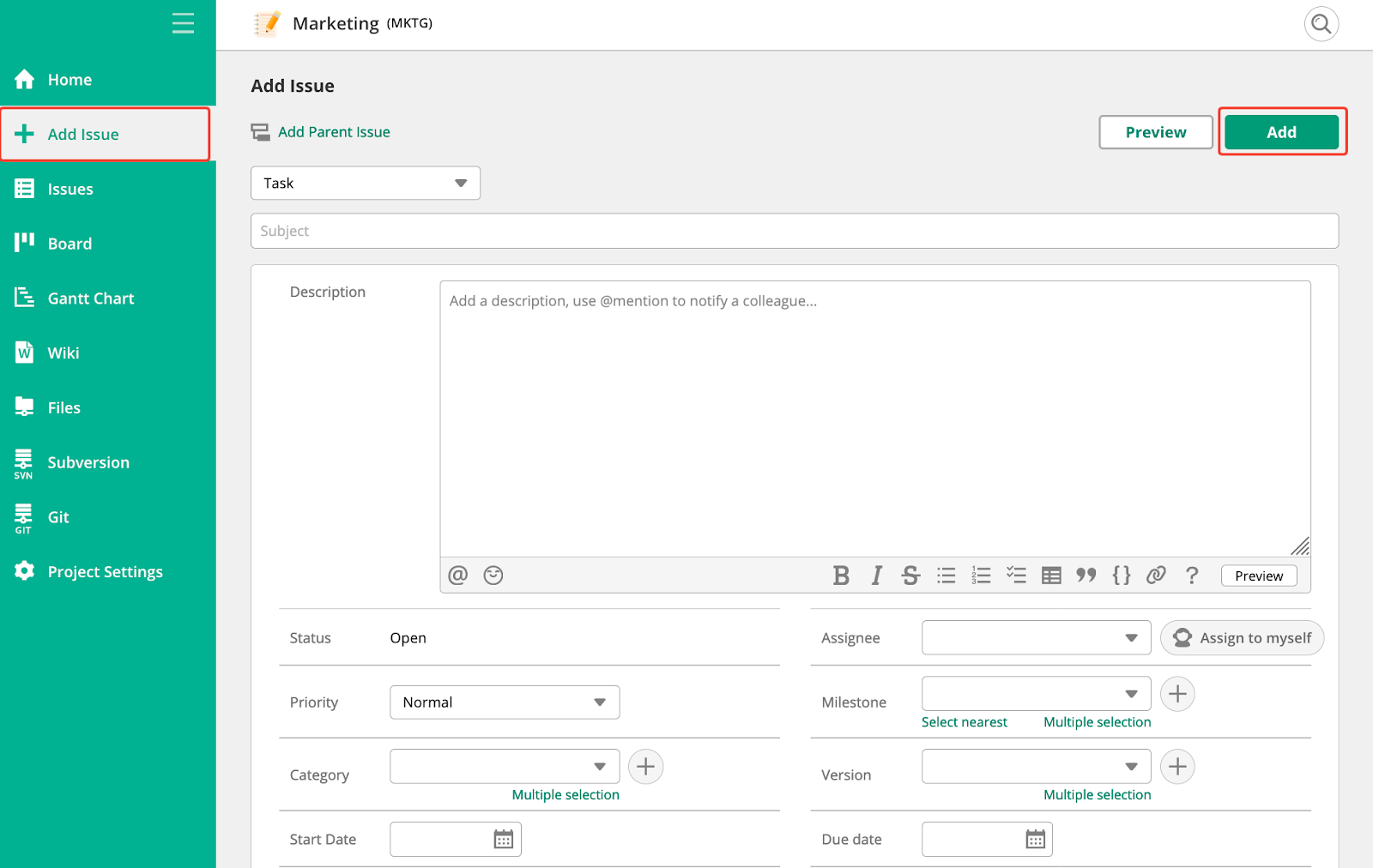 Once you’ve created them, associate tasks with key milestones on the Add Issue page.