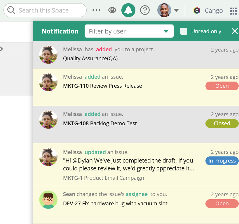 When a user is tagged or notified in a comment, they’ll receive an in-app notification and/or an email, depending on their preferences. Integrating Backlog with your team’s communication tool, whether Slack or Microsoft Teams, ensures your team will receive updates there, too.