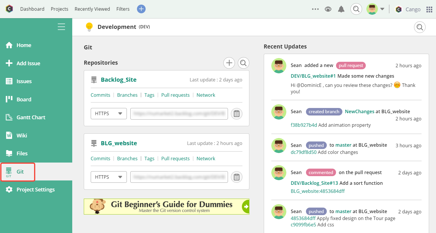 Users can create, update, or delete these code branches directly from Backlog’s interface or via the command line in your local development environment.