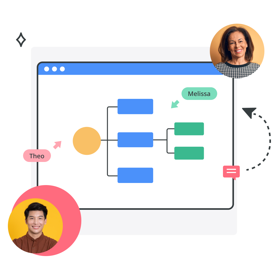 - Multi-user editing: Several users can work together on the same mind map in real time. Teammates can view each other’s cursors as they move around the diagram, ensuring everyone understands what each other is working on.