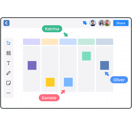 Add ideas as easily as you would using a physical whiteboard with dynamic features.