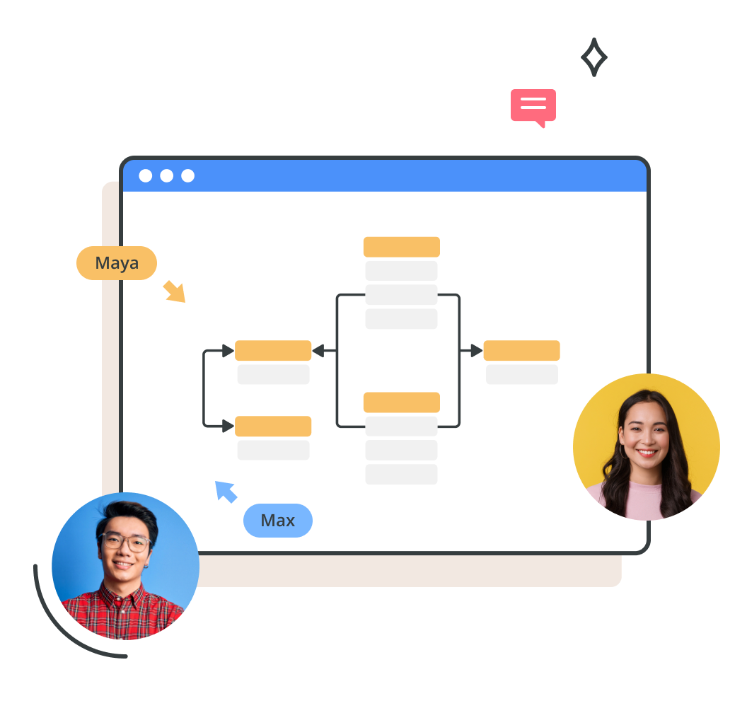 The Schema Importer tool lets you quickly import your database schema into a diagram. Get a clear visualization of your current database, and collaborate with teammates in real-time on updates.