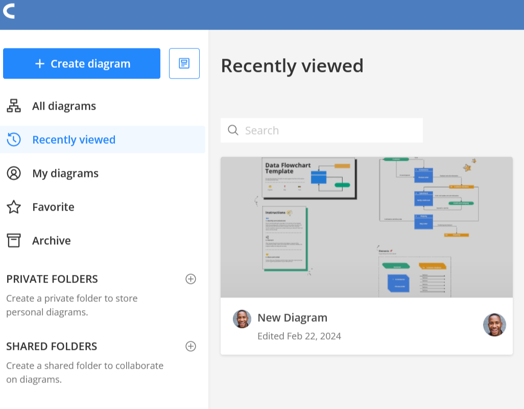Access the designs, folders, and diagrams others have shared via your dashboard.