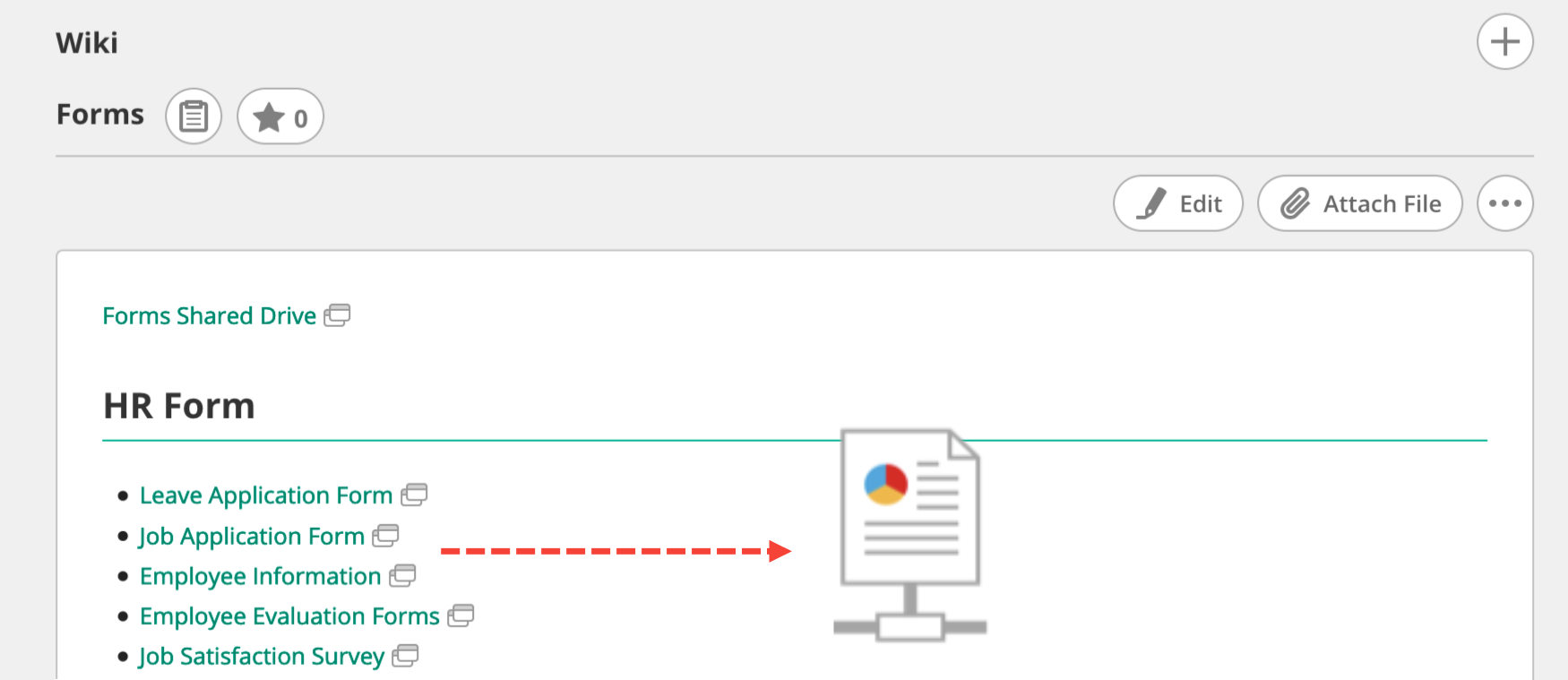Wikis do not usually possess the rich formatting options of office tools like Microsoft Office. For internal company documents, you’ll probably want to continue creating files and sharing them on a file server. However, you can use your company wiki to show the file server’s directory structure and paths to important files.
