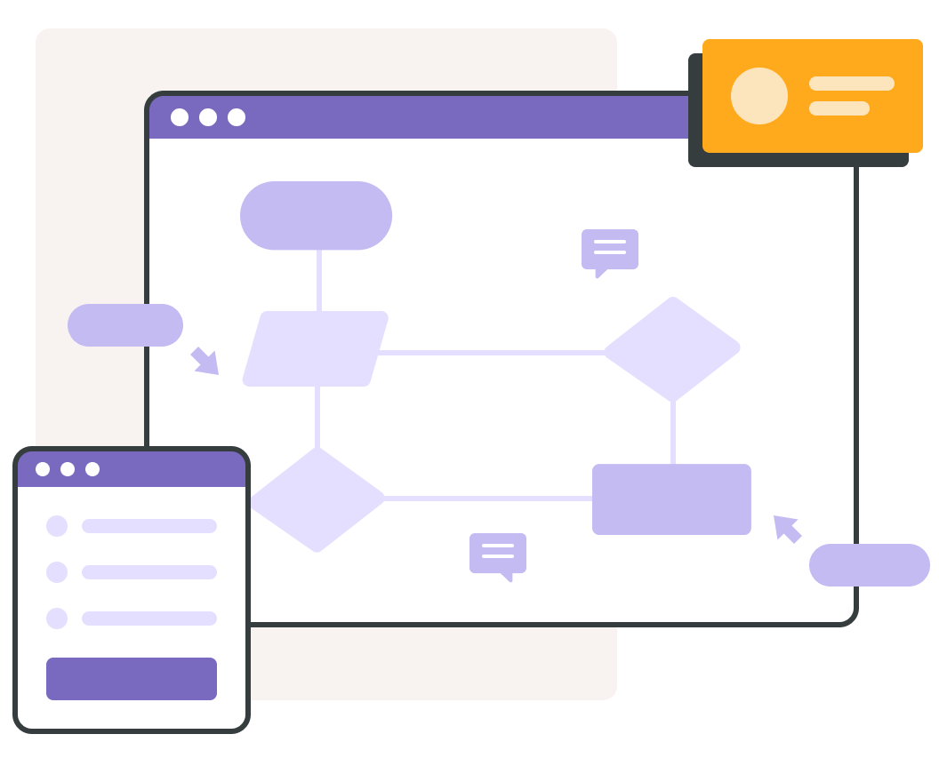 After the initial brainstorming session is over, it’s likely that your team still has a lot more work to do before it has a finalized design idea that everyone loves. As individual team members continue to make changes to the flowchart, they can add comments, tag team members for review, and send messages in the in-app chat thread.