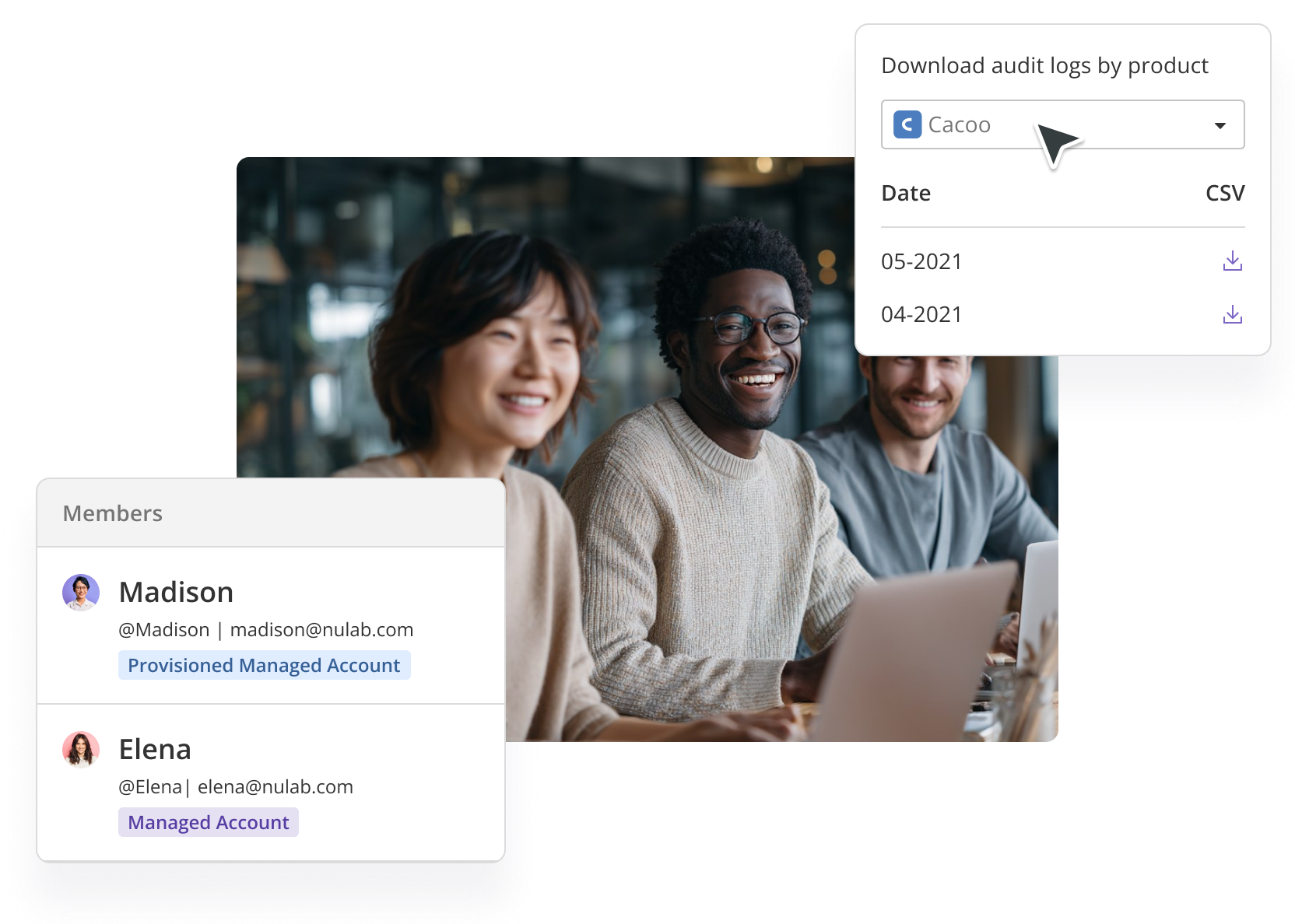 SAML SSO, encrypted identity assertions, and audit logs help your team meet strict security and compliance standards.